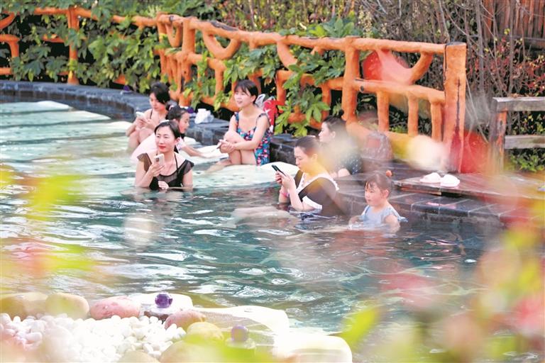 “这里环境清幽,温泉水质好,有多种类型的温泉泡池,泡起来浑身暖洋洋的,不到半小时感觉全身轻松。”四川游客胡女士点赞道。